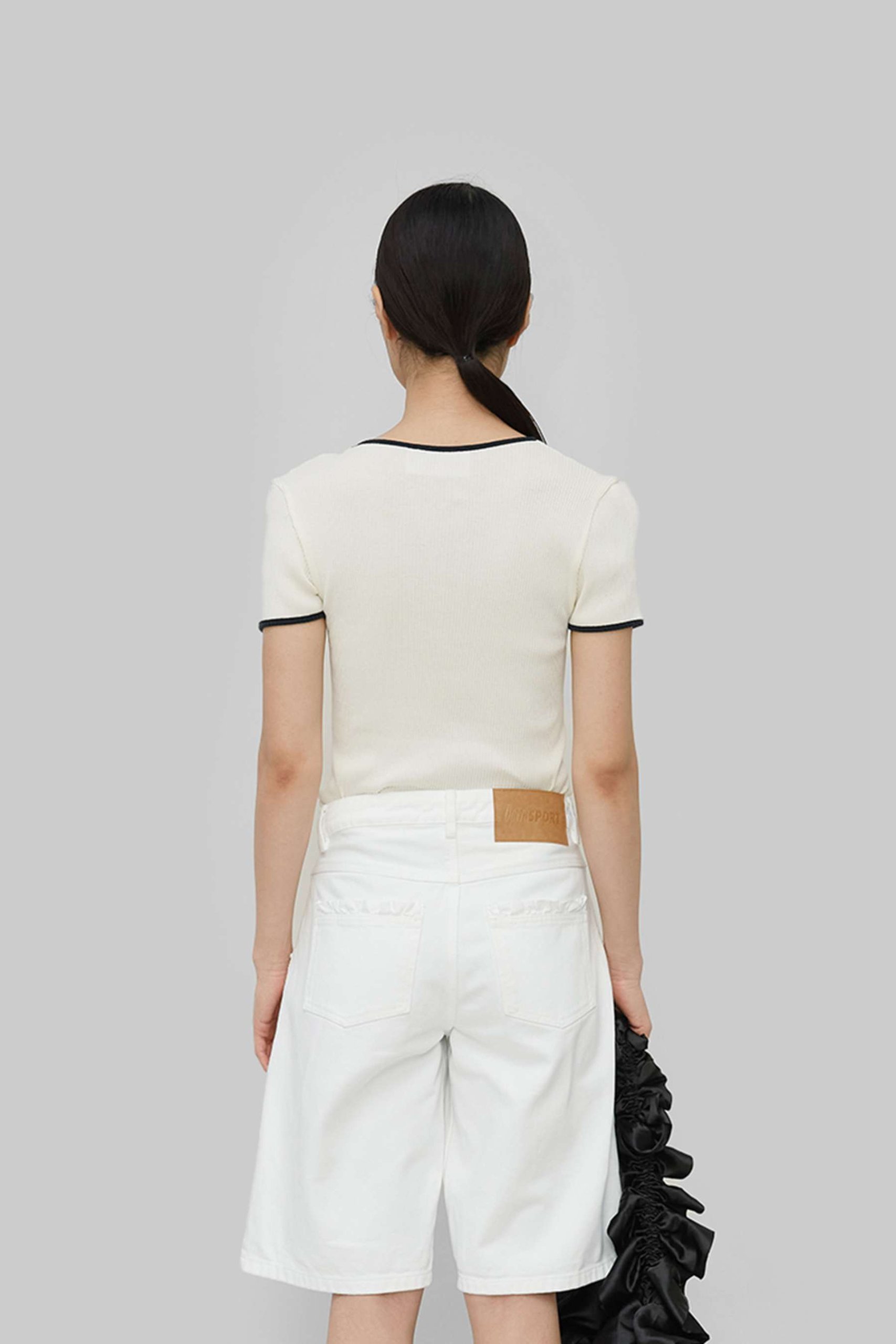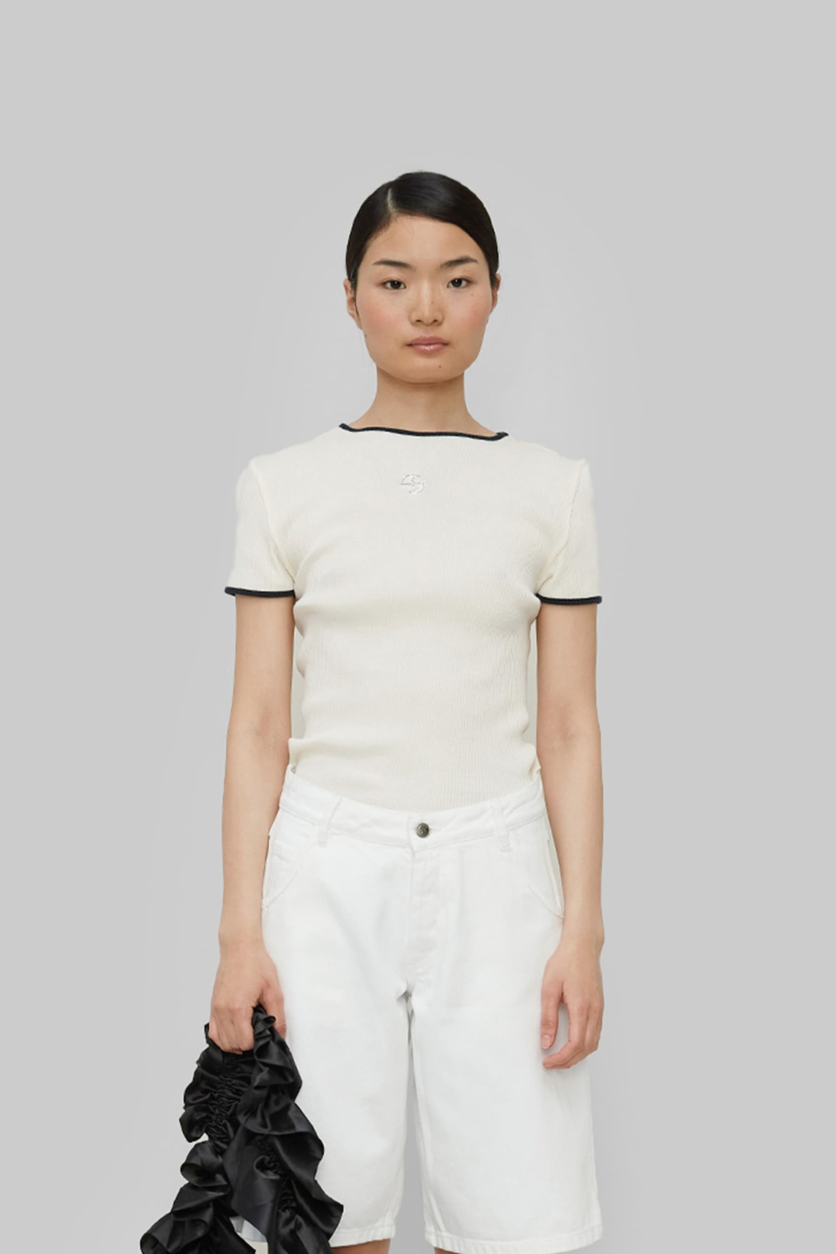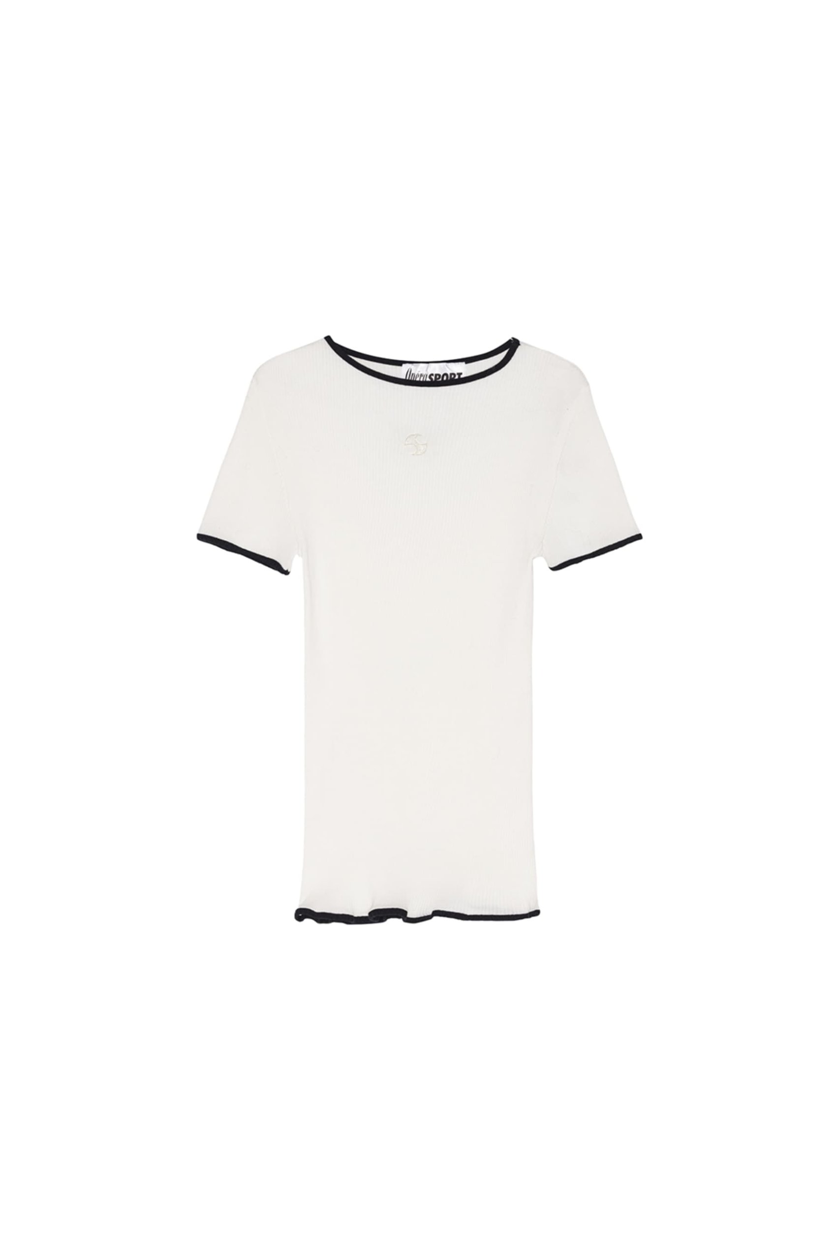 Ribbed top made from 100% soft organic cotton. It has a fitted cut, black trim, and an embroidered OperáSPORT logo on the chest. The seamless elastic material adapts to all body types. Composition: 100% organic cotton. The model is 175 cm tall and wears size S.