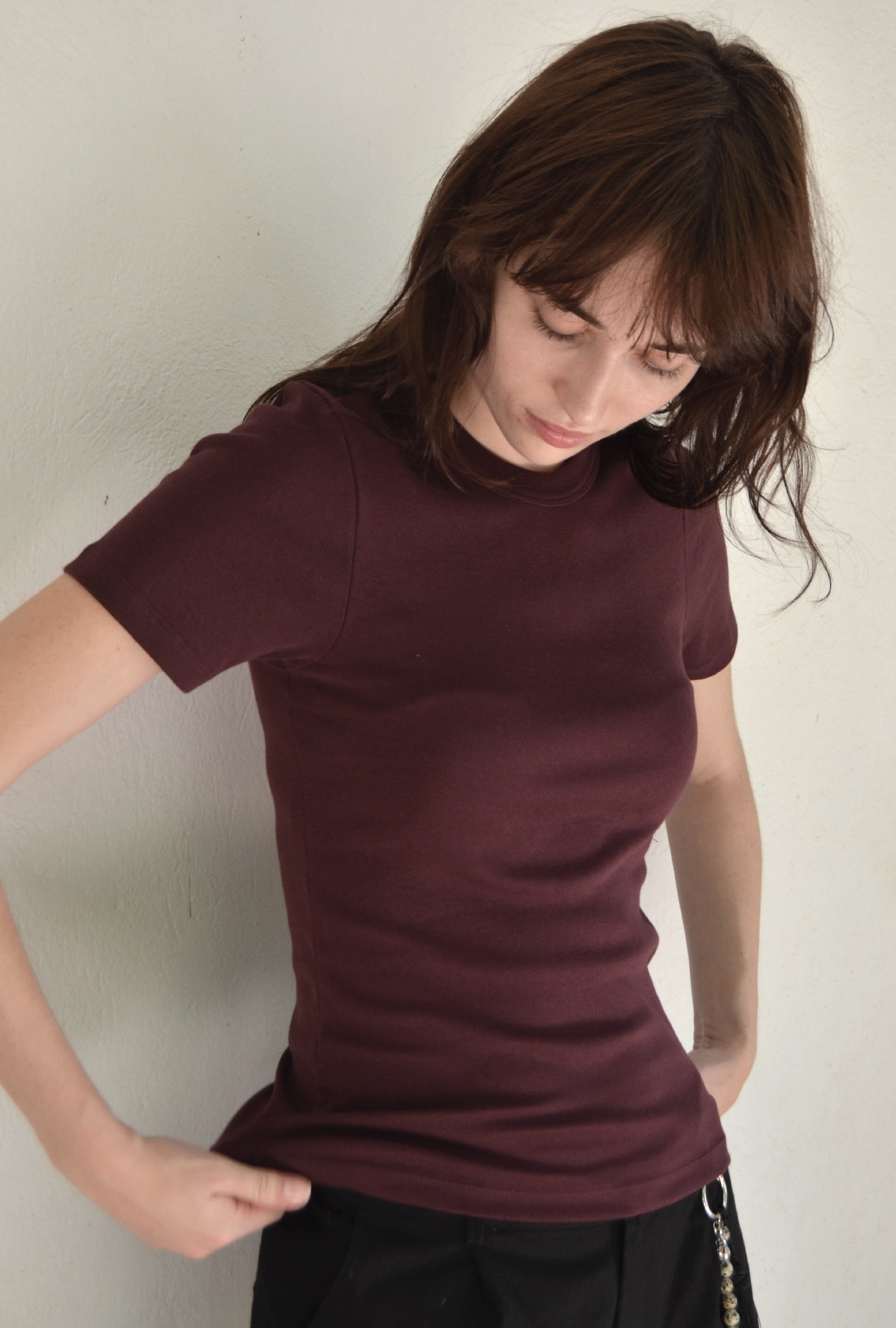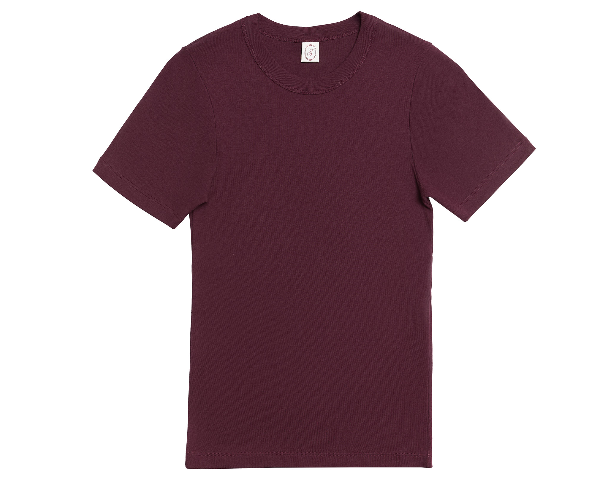 A fitted women’s short-sleeve T-shirt with a round neckline, made from fine ribbed knit crafted from certified organic cotton (GOTS).