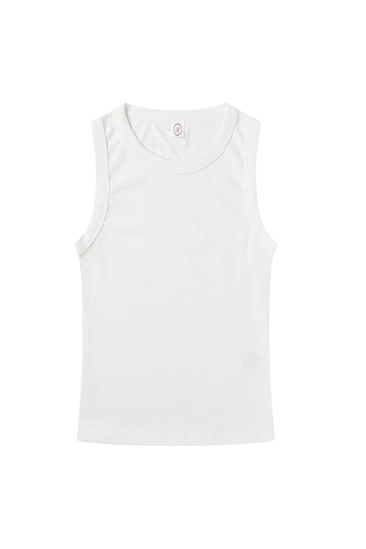Fitted women's top with a round neckline and no sleeves, made from fine ribbed knit crafted from certified organic cotton (GOTS). Material: 100% organic cotton. Color: off white. Ethically produced with a strong focus on sustainability in the Signe brand’s studio in Izmir, Turkey.