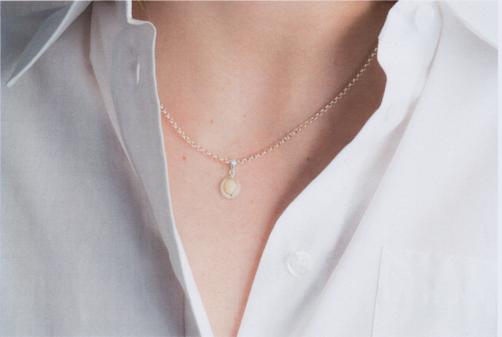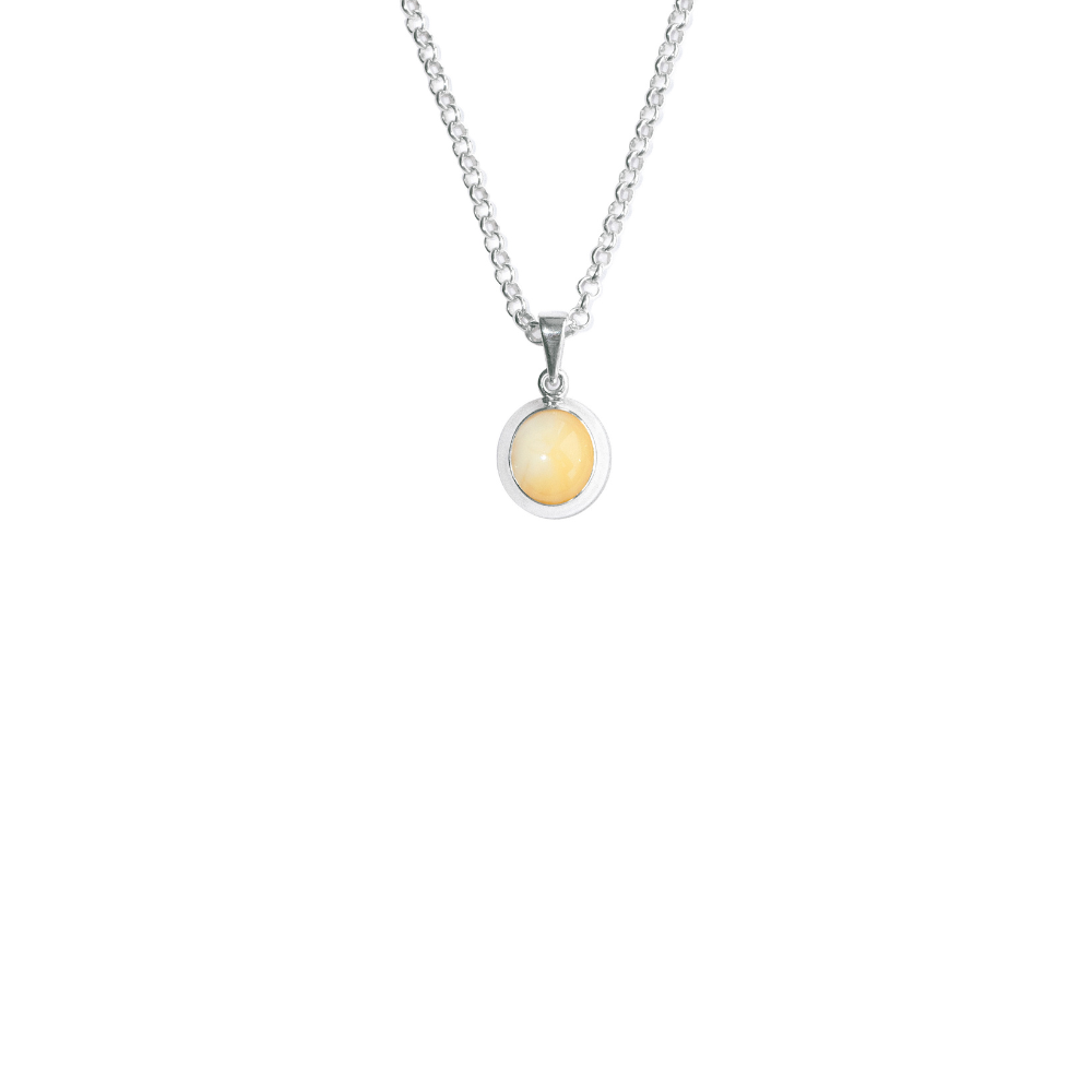 Silver necklace with an oval amber measuring 6×8 mm, crafted using traditional goldsmithing techniques. The set includes a pendant and a 40 cm chain.