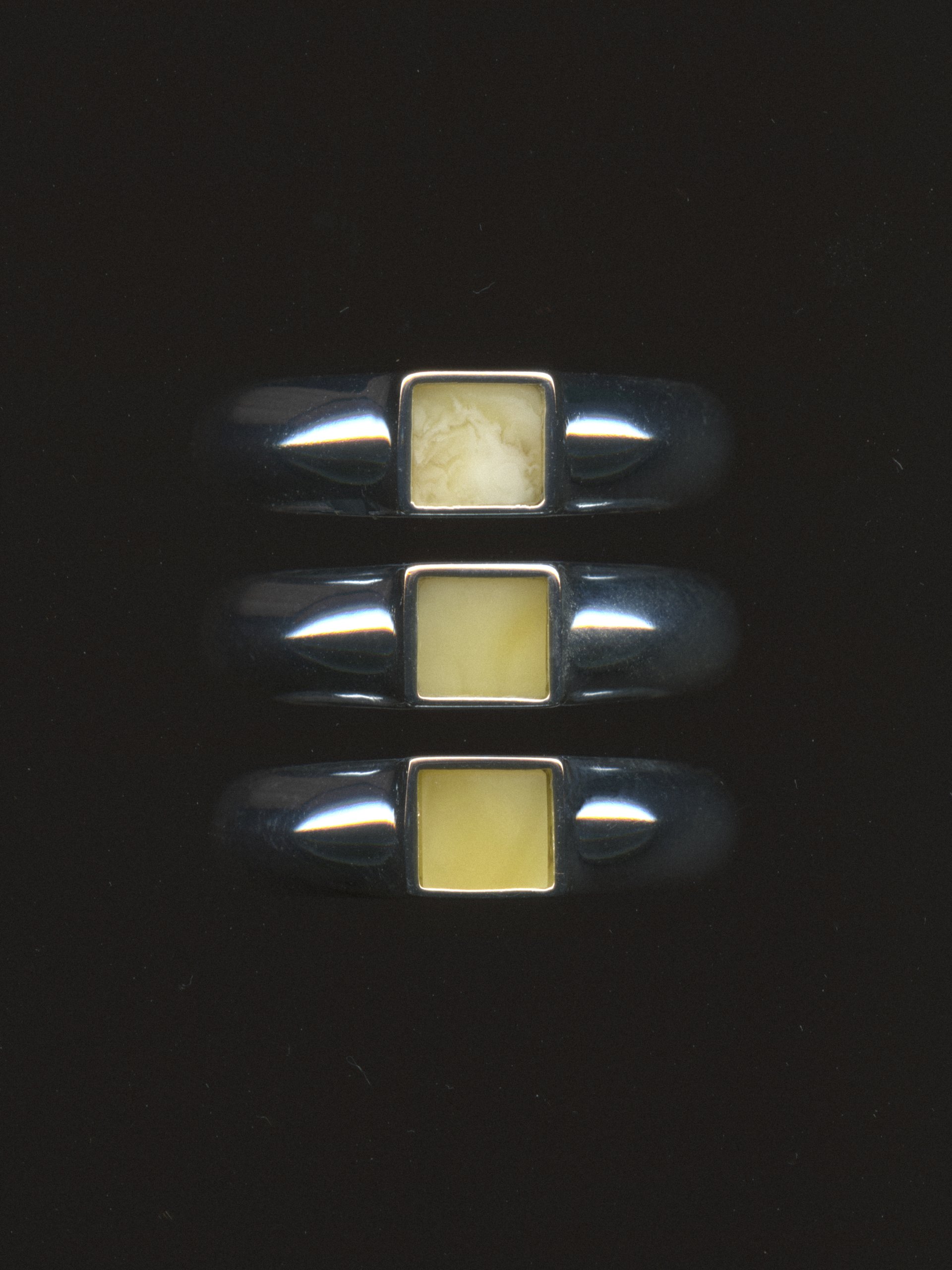 Silver ring with a 5×5 mm pale amber stone, crafted using traditional goldsmithing techniques.