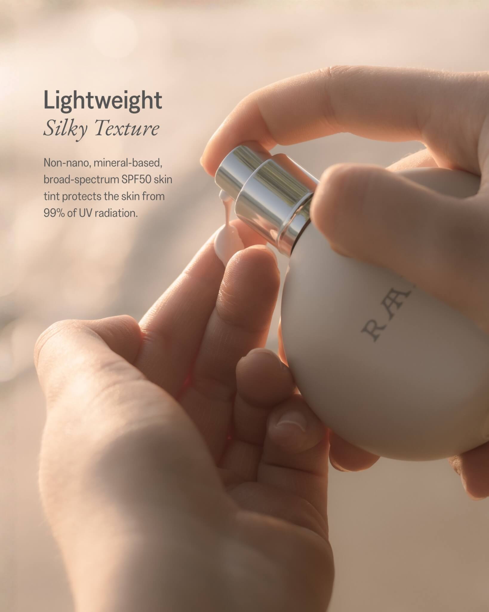 A lightweight, silky mineral tinted cream with SPF 50 that absorbs quickly and leaves an invisible, breathable finish on the skin. Its subtle peach undertone helps even out all skin tones, enhances natural radiance, and doubles as a smoothing base under makeup.