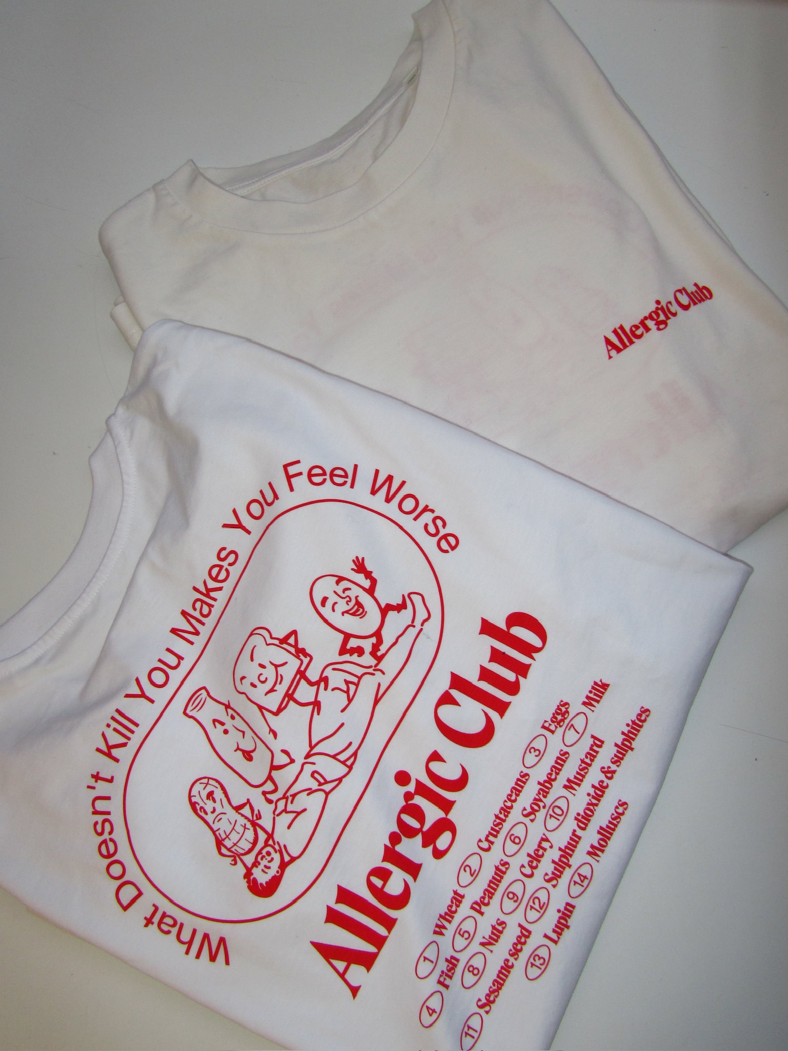 T-shirt Allergic Club - White, short sleeves, unisex cut, hand screen print from Kredenc.