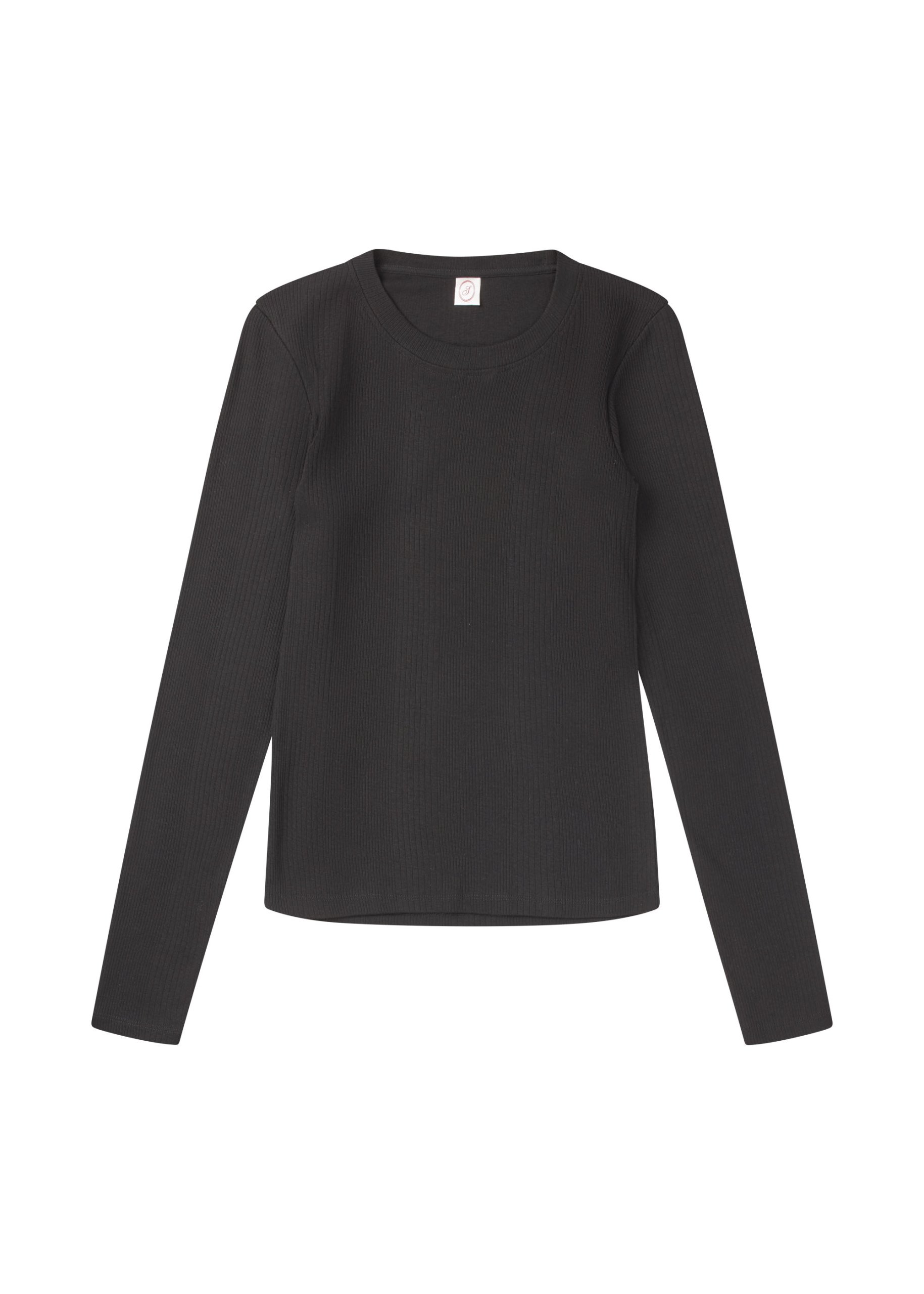 Přiléhavý top s dlouhými rukávy a kulatým výstřihem, ušitý z jemného žebrovaného úpletu z certifikované bio bavlny (GOTS).