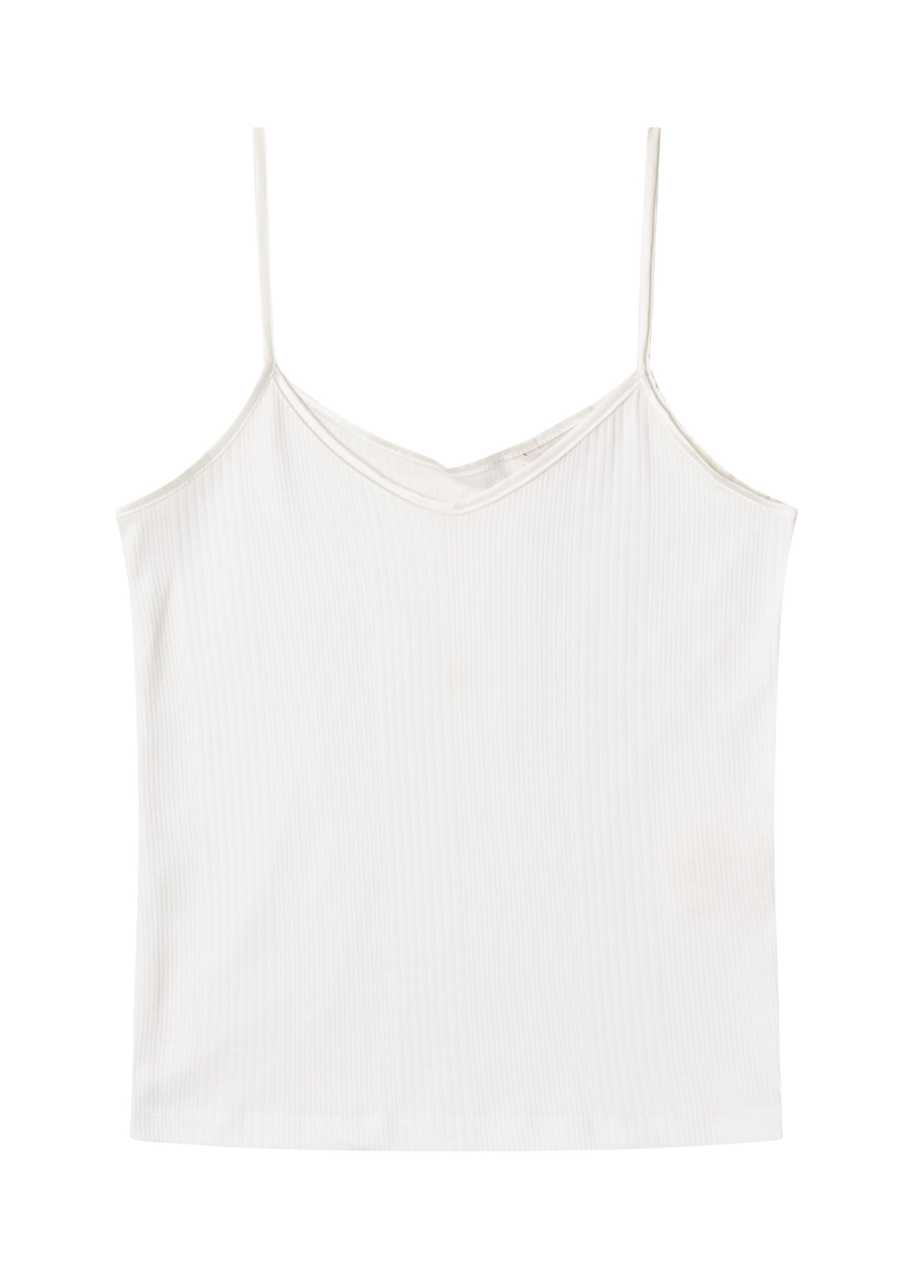 Přiléhavý top s úzkými ramínky, ušitý z jemného žebrovaného úpletu z certifikované bio bavlny (GOTS).