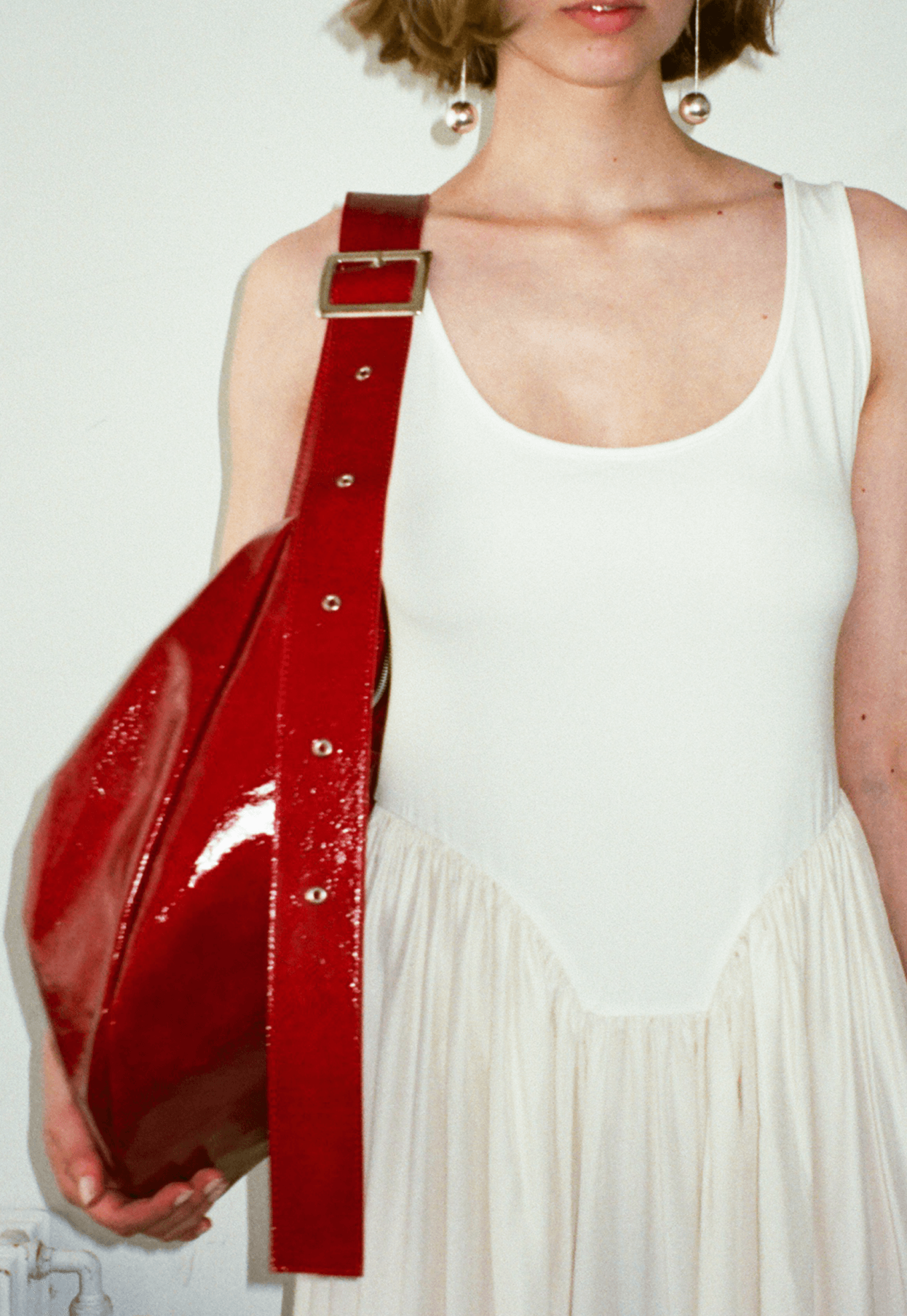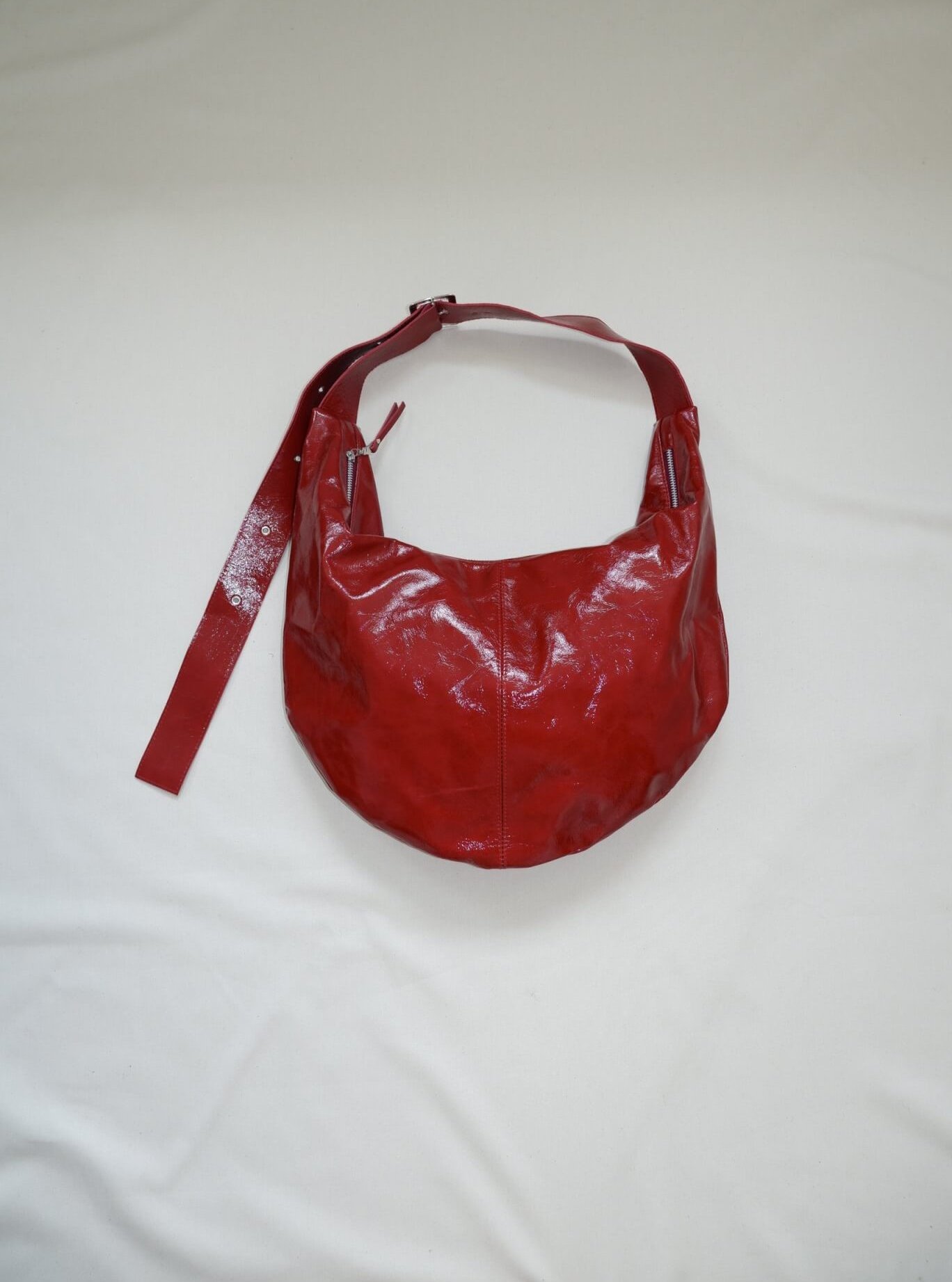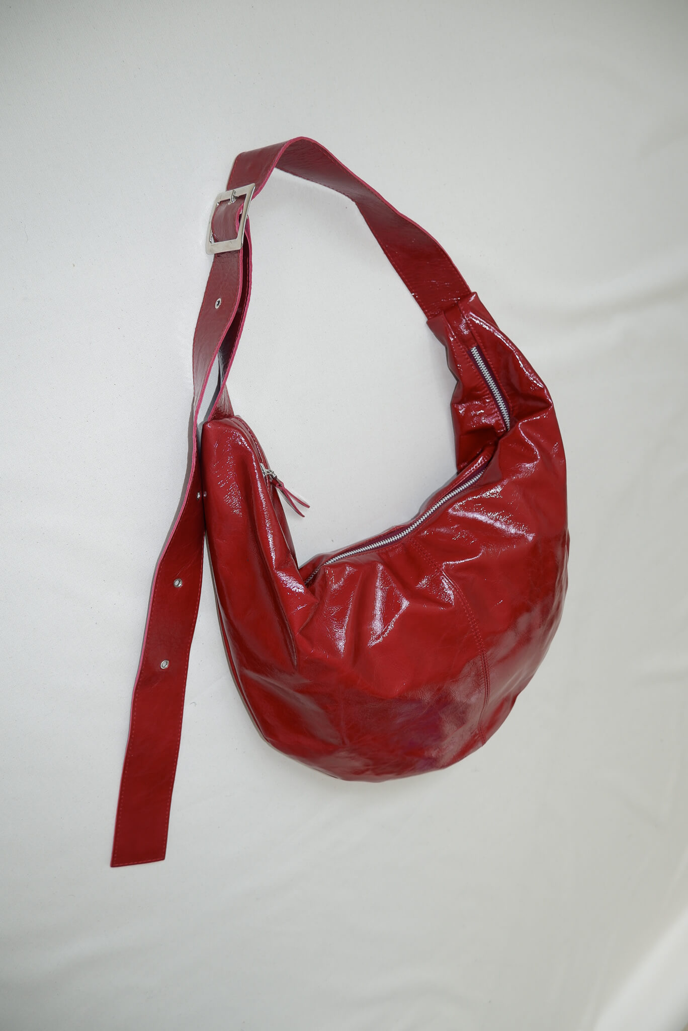 BUCKLE BANANA BAG XL CRUSHED PATENT RUBY