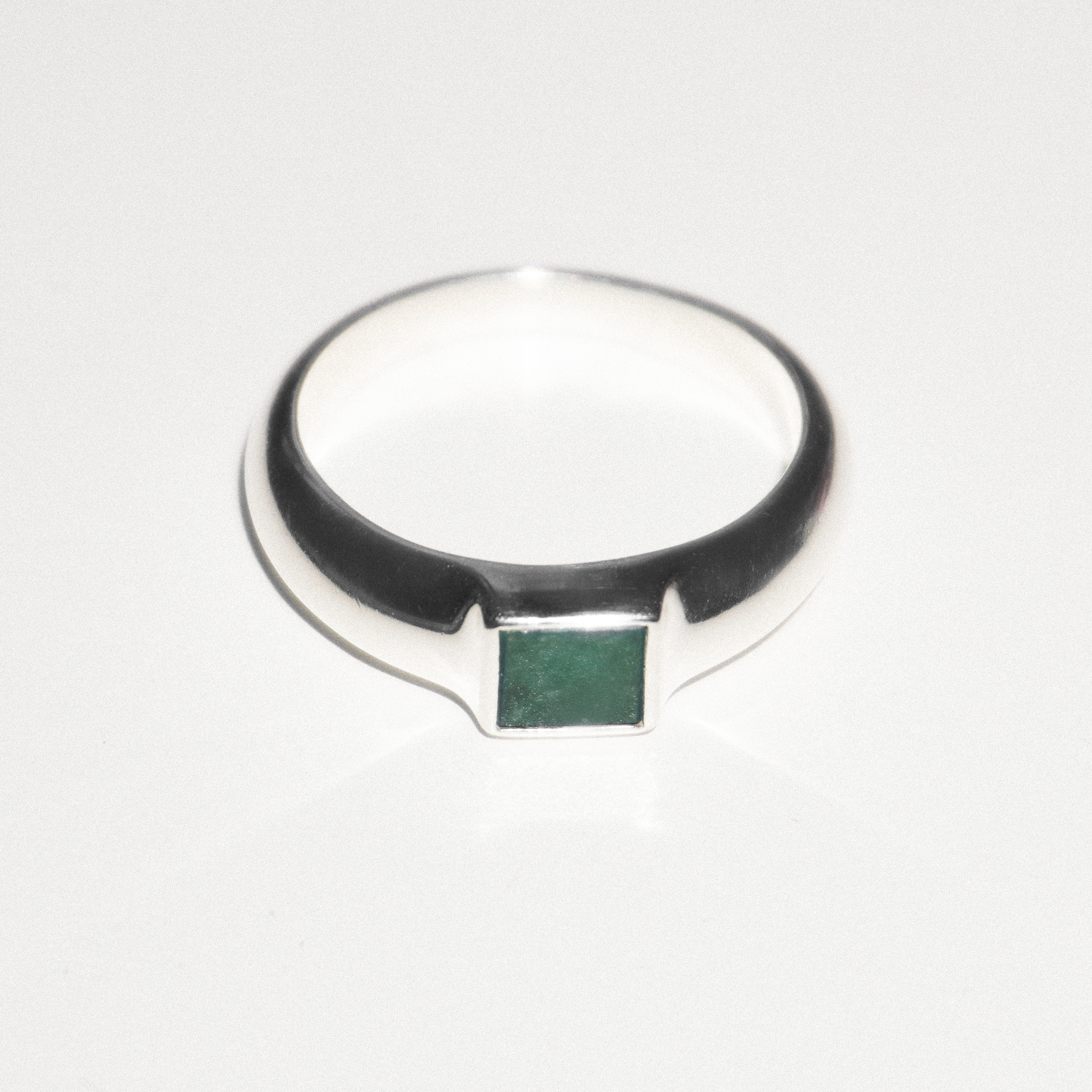 Stříbrný prsten s 5×5 mm avanturínem, vyrobený tradičními zlatnickými technikami. Materiál: Ag 925/1000, avanturín.
